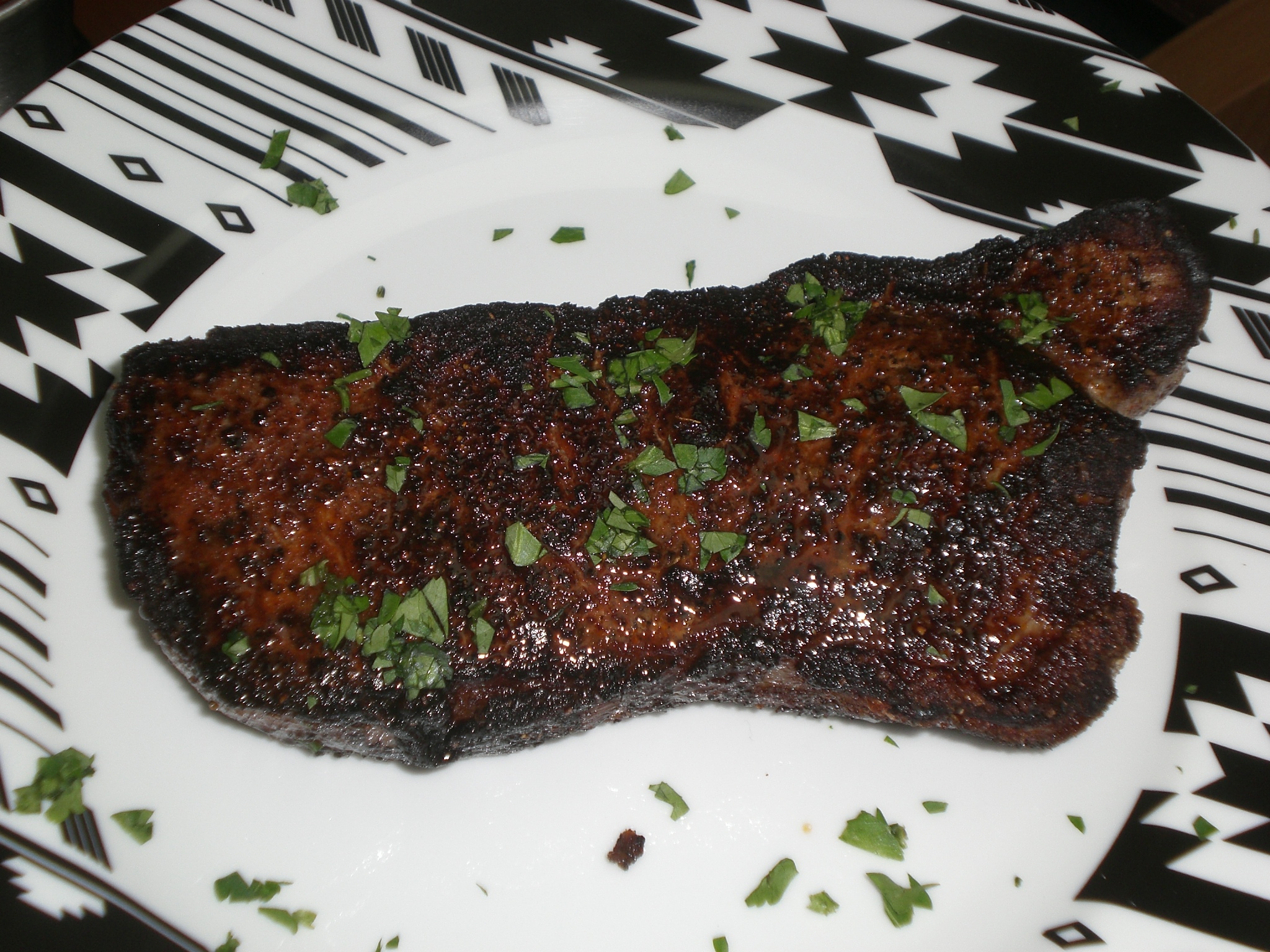 I am still at odds as to which seasoning method I prefer for steak. While I always add exuberant amounts of course sea salt and black pepper to any steak I prepare, I sometimes also use a steak rub (my rendition of Bobby Flay’s steak rub). If I plan to pan sear and then broil the steak, I only use salt and pepper (searing with good olive oil). If I grill the steak I may just salt and pepper the steak, or I may use the steak rub. Sometimes when I use the steak rub, it can over-power the flavor of the steak, so you do have to attentively apply. Additionally, I have found it very important to not over-do the rub, as it can make the steak greasier because of the oil being released by the various spices in the rub. Furthermore, the rub is best paired with an intensely ‘beef’ flavored steak, such as the Ribeye, Skirt, Flank, and Sirloin. Salt and pepper is the ideal compliment for more subtle steaks such as the Filet Mignon and New York Strip. The NY Strip can actually be prepared either way; it really just comes down to personal preference.