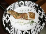The third fish dish I made was somewhat more adventurous. I created an Atlantic Salmon with Poblano and Pineapple Salsa. The salmon was also purchased at Fresh Market and was also “frozen at sea.” I cooked the salmon in the same manner as the halibut, seared and then finished in the broiler. The Salmon got a real nice crust on the outside, which was a nice contrast of texture to the salsa I made. The salsa featured fire blackened poblano peppers and grilled pineapple. I blackened the poblanos and then peeled off the skin. Once that was done, I seeded and diced the peppers into small pieces. I then added the chopped grilled pineapple, along with red onion, cilantro, salt, pepper and olive oil. I finished the dish with cilantro oil. I was very pleased with how this dish turned out. I know this sounds banal but salmon is amazing. It’s a great “go-to” fish when you aren’t sure what else to get. Salmon holds up to mild or bold flavors very well and is always sure to satisfy.