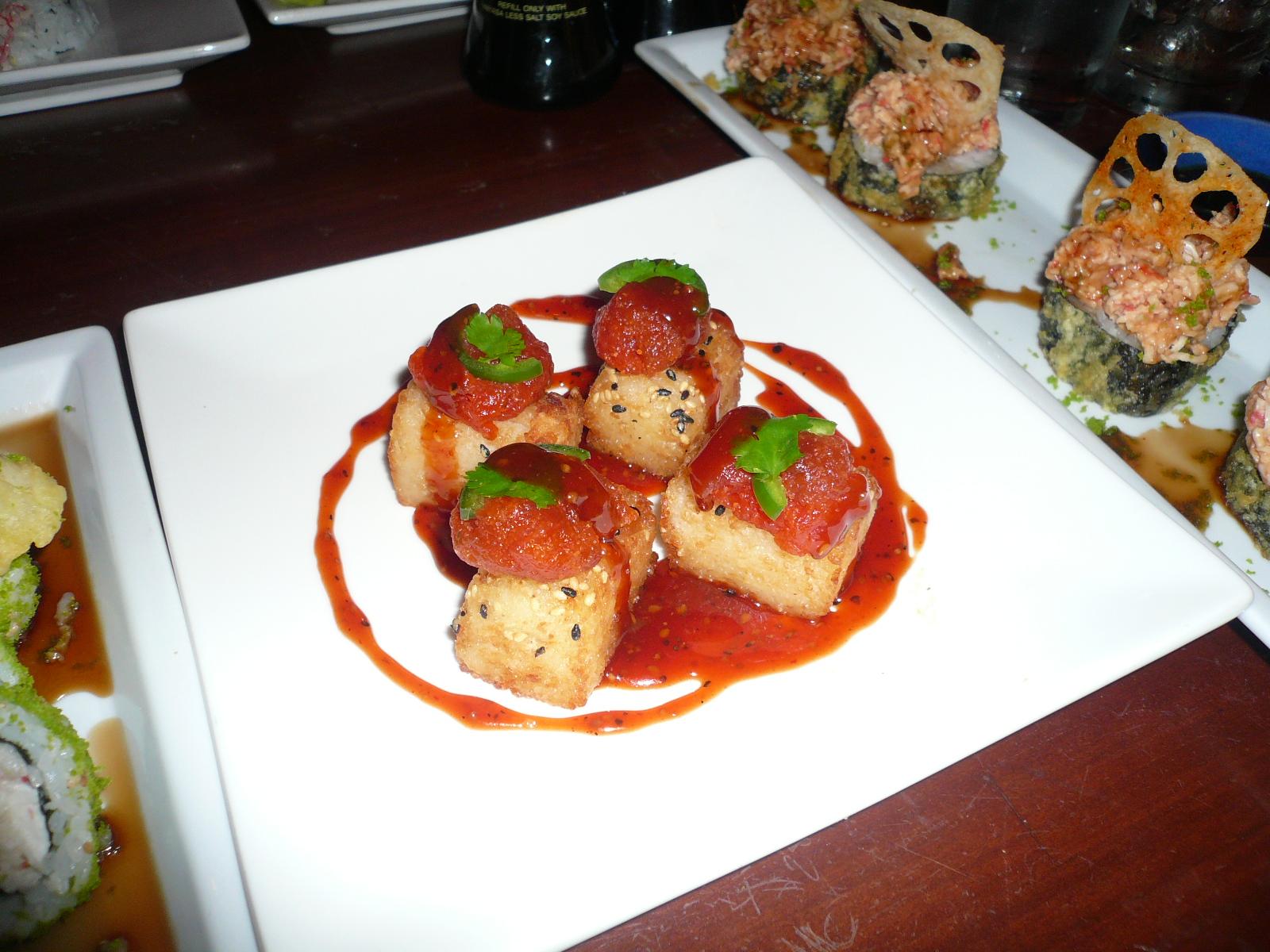 I was with a large party so we shared a lot of different rolls. Some of the ones I tasted were the Mango Lobster, Viva Las Vegas, Crunchy Calamari and Crunchy Spicy Tuna. The Mango Lobster roll was artfully prepared with lobster meat in the center and thinly sliced mango on top, with a basil sauce on the side. It was perfect, almost too pretty to eat. As the name suggests, the Crunchy Calamari roll had crunchy calamari with spinach flavored tempura flakes in it, also very nice. My personal favorite was the unorthodox Crunchy Spicy Tuna roll. The name suggests its sushi and it is a roll, neither is true. This innovative creation featured a square fried pillow of rice, with spicy tuna mixture on top and then a sauce to tie everything together, it was refreshingly awesome. All of the sushi was really fresh and featured some combinations of ingredients that I haven’t seen before. Additionally, there are quite a few sushi rolls, appetizers and drinks that are half priced during happy hour.