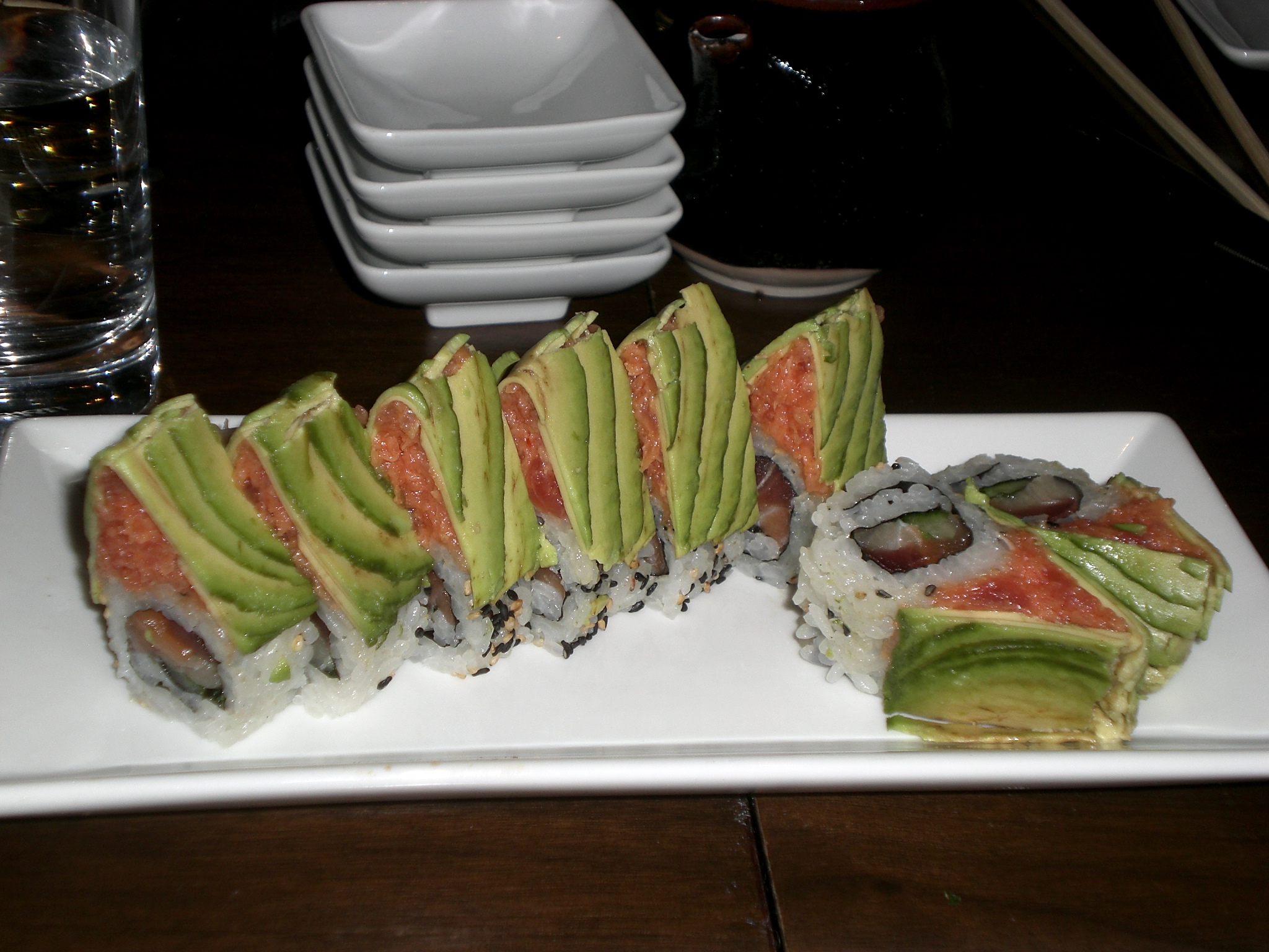 The restaurant is quite large and creates a very nice modern ambiance – heavily embracing a Zen-like appearance. The entrance of the restaurant features a small bridge type structure, which is surrounded by pebbles. My party was seated in the small annex area of the restaurant, which is partly exposed to the casino floor. I started off with dragon roll, which usually consists of eel and avocado. This dragon roll consisted of yellow tail and spicy tuna with salmon and avocado pyramids on top. For $18 this dragon roll is not cheap, but it was delicious. All the fish was very fresh and the roll almost melted in your mouth. The spicy kick from the tuna was well balanced with the amount of avocado on top of the roll. Easily, some of the best sushi I have ever had.