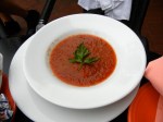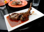 Let me just start by saying that Spanish ham is the best-cured pork you can eat. In fact, on a recent travel to Spain, Italian chef Mario Batali mentioned how even Italian ham is not as good as Spanish ham. The ham at Tapas Teatro is a bit similar to prosciutto, but has a more spiced, rosemary aroma to it. When you eat it you notice the rich, lusciousness of the pork and is accentuated by the drizzling of Spanish EVOO. I could have eaten three portions of this alone. My second favorite thing I ate was the grilled sardines, which was a portion of three incredibly fresh 6-inch whole sardines. The char from the open fire gave the fish a smoky salty, which was wonderful. Eating the sardines is a bit of work because you have to fiddle to get the meat away from the small bones but the reward is worth it. The last item I ordered was the grilled lamb chops with a rhubarb barbeque sauce. This dish was good, but was probably my least favorite of the evening. The lamb wasn’t as tender as lamb chops usually are. I also felt that the glossy bbq sauce was very over powering and tasted too much of ketchup. I would likes to see the lamb possibly prepared with sprigs of rosemary and shavings of raw shallots, maybe with a demiglace – now that sounds good. I also had a chance to sample the gazpacho, which was perfectly refreshing on a humid Baltimore night.