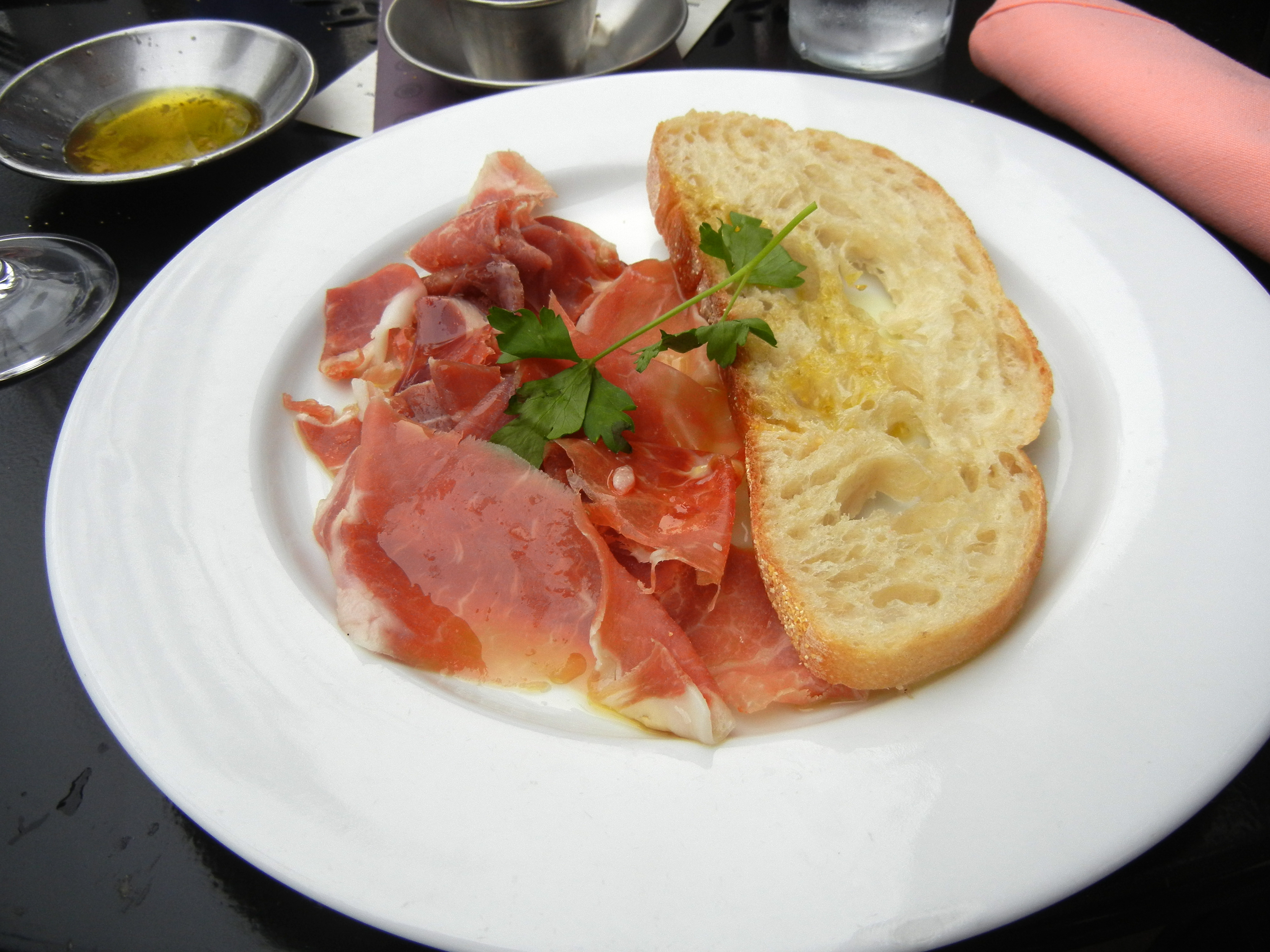 The menu at Tapas Teatro seems to be a seasonal, constantly changing compilation of ingredients in season and whatever is on the chef’s mind that month. The menu is broken down into six categories – hot starters, cold starters, cheese & charcuterie, vegetarian mezze, meat mezze, and seafood mezze. There are a lot of options on the menu so be prepared to study the menu before ordering. I finally decided on the serrano ham (a Spanish classic), grilled sardines, and the lamb chops.