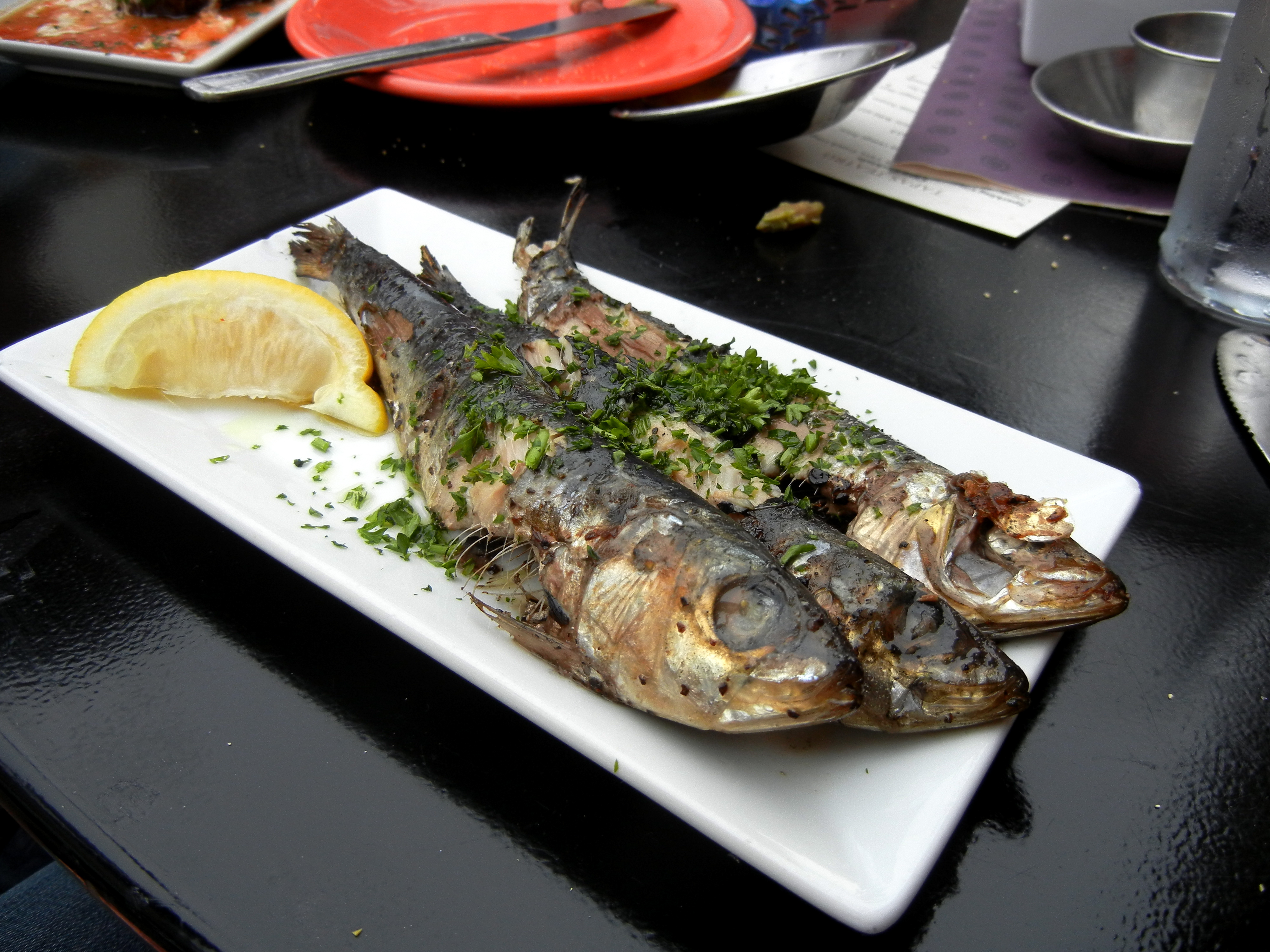 Let me just start by saying that Spanish ham is the best-cured pork you can eat. In fact, on a recent travel to Spain, Italian chef Mario Batali mentioned how even Italian ham is not as good as Spanish ham. The ham at Tapas Teatro is a bit similar to prosciutto, but has a more spiced, rosemary aroma to it. When you eat it you notice the rich, lusciousness of the pork and is accentuated by the drizzling of Spanish EVOO. I could have eaten three portions of this alone. My second favorite thing I ate was the grilled sardines, which was a portion of three incredibly fresh 6-inch whole sardines. The char from the open fire gave the fish a smoky salty, which was wonderful. Eating the sardines is a bit of work because you have to fiddle to get the meat away from the small bones but the reward is worth it. The last item I ordered was the grilled lamb chops with a rhubarb barbeque sauce. This dish was good, but was probably my least favorite of the evening. The lamb wasn’t as tender as lamb chops usually are. I also felt that the glossy bbq sauce was very over powering and tasted too much of ketchup. I would likes to see the lamb possibly prepared with sprigs of rosemary and shavings of raw shallots, maybe with a demiglace – now that sounds good. I also had a chance to sample the gazpacho, which was perfectly refreshing on a humid Baltimore night.