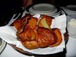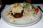 We started with the Prime Rib signature Greenberg Potato Skins, which were literally just fried potato skins accompanied by a horseradish sauce and sour cream with chive. We were lucky enough to try the potato skins on the house, as well as receive two complementary glasses of wine, thanks to a Foursquare special (a mobile app designed to turn restaurant dining into social networking). Simple as they were, the potatoes were very good and quite addicting. As Nathan said, “you can’t eat just one”. A tad more salt would have been nice, but no big deal. For our mains we choose the Bone-In Ribeye and the 6oz. Filet with lump crab on top. The crab on the filet was as fresh as can be and wasn’t diluted with any filler or additives. The filet mignon was incredibly tender, offering a velvety texture, perfectly suited with the warm rich crab on top. The Ribeye was a massive 16oz. portion, which engulfed the entire plate. It was charred to perfection and had that perfect pink center. The quality of the meat was superb; however, I would have like a bit more seasoning on my steak. I ended up dousing my steak with salt and cracked black pepper, something that shouldn’t be necessary at such a steakhouse establishment. For the first time in my life, I preferred a filet mignon over a ribeye, in fact, a precedent for any true steak lover. As our side, we decided to go with the grilled asparagus with hollandaise sauce. The asparagus were nicely grilled but also lacked a bit of seasoning. The hollandaise was absolutely amazing though, I used it as my dipping sauce for the asparagus and my steak – quite pedestrian I know.