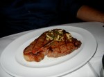 Upon a recommendation we started our meal with Charlie’s unique Caesar salad. Three hearts of romaine were rapped with Serrano ham, the tastiest white anchovies I have ever had, and then dressed with a homemade Caesar dressing and croutons. This was hands-down the best Caesar I have had. While we were eating out salad, the drunk guy at the table next to us advised us to order these “hatch chili peppers”, which are apparently a rare pepper only found in New Mexico and have the tendency to only be good two months out of the year. I am glad we listened to him because these grilled hatch peppers were amazing. They had a delicate flavor with a thin crisp skin. Some of the bites were spicier than others but the taste was similar to an Anaheim pepper mixed with a Serrano – fantastic. I ordered the 20 oz. New York strip steak and my friends ordered the Porterhouse and Hanger steak. All the steaks were prime cuts of Omaha beef, perfectly seasoned with coarse salt and pepper and then scorched under the broiler. Each steak had a nice crust and some grill marks, but wasn’t over powered with char or that grilled taste. My NY strip was sheer perfection. The two-inch thick hunk of meat was melt-in-your-mouth tender, and just had the most amazing after taste.