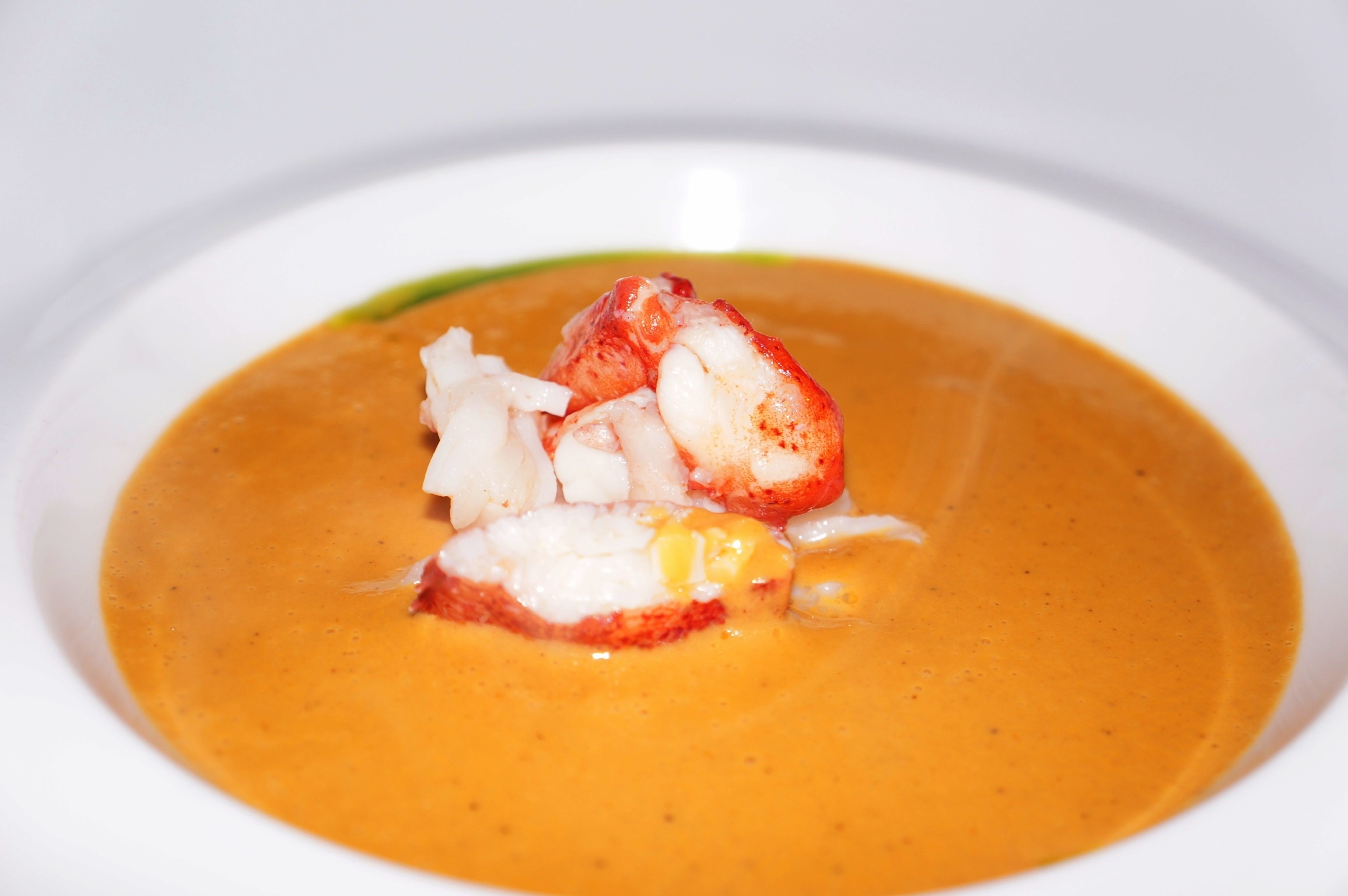 Upon walking through the frosted glass door you are greeted by the maître ‘de. You immediately notice the fusion of modern elegance with luxury. The interior is primarily shades of orange and brown with various square design patterns on the walls. The dining room chairs are grand kinglike orange suede, which are very comfortable, just like the environment of the restaurant. The menu is cleverly designed with sophisticated options that will peak the interest of any diner. There aren’t prices for a la carte items, instead you pay for the amount of courses you want, which gives you the freedom to create your own pre-fixe meal. If you want three portions of the signature lobster soup with curry you can do that. Not a bad idea either as this is one of the best things I have ever eaten. Some other menu items include cornmeal fried oysters, tuna tartar, shrimp and grits with Andouille sausage, burgundy snails, turbot with artichoke broth, rockfish and tenderloin of beef to name a few.