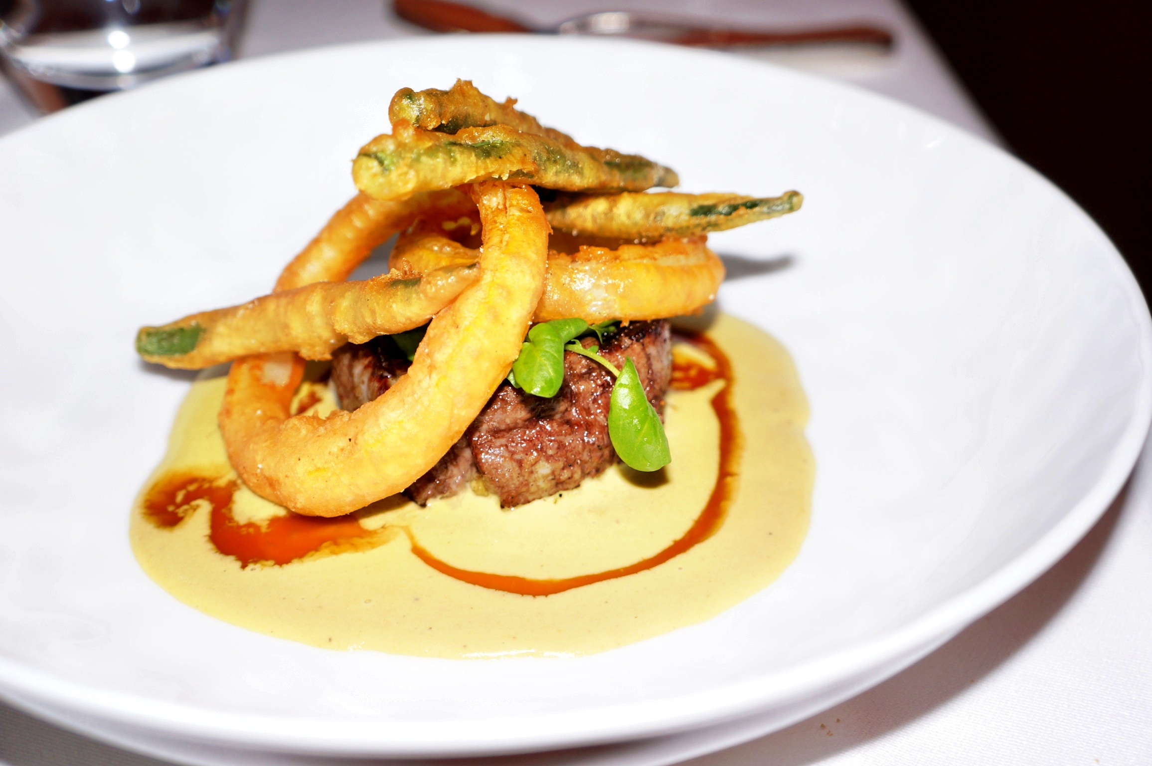 We then moved to our final savory course, which were the meat selections. We settled upon the filet mignon and buffalo tenderloin. Again, both were small portions, which actually make you get surprisingly full. The beef was served with tempura style vegetables on top with a poblano cream sauce. The beef was expectedly tender and well seasoned, with each bite essentially melting in your mouth. The poblano sauce was an interesting spicy warmth that helped make a usually simple flavored cut of beef very delicious. The crispy vegetables on top were a complete waste and were completely out of place in the dish. We quickly moved all of them to another plate so that we could enjoy the main star – the beef. The buffalo tenderloin was even better than the beef though. The buffalo had a more pungent spice rub which was then grilled not roasted. There was a slight char crust on the beef, which created a nice contrast to the soft oyster mushrooms and creamy polenta. The meat naturally had more flavor than the filet mignon with a slight gamey not, but would be appreciated by anyone who appreciates steak.