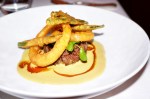 Next was the star of the entire meal – the lobster soup with curry. The bowl arrives to your table with a generous heaping of succulent lobster tail meat with arugula oil on the bottom of the bowl. The waiter then pours the soup around the lobster as you begin to take in all the aromas of the curry, sherry and cream. The velvety soft texture of the soup is something nearly impossible to achieve at home. With each bite you get the richness of the cream, sharpness of the sherry and then the perfect accent of the curry. Not to mention the lobster which was perfectly cooked and incredibly delicious on its own. To be honest, even when I was in Boston I didn’t have lobster so tasty and prepared so well.