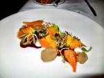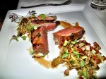 Appetizers include options such as roasted beet salad with a borscht emulsion sauce, or a split pea soup with ricotta served table-side.  Some heartier options showcased butter-poached lobster, crispy pork belly with a smoked maple glaze, and caramelized scallops with spring vegetables. The menu changes very frequently based on the what is seasonally available, so by the time you read this the menu will probably be drastically different. We sampled the split pea soup, which had a velvety smooth consistency and a wonderful fresh aroma from the spring peas and mint. The dish comes to the table with ricotta in the center before the waiter pours the hot pea soup around the bowl. The spring peas had a nice bite and worked perfect with the rich yet airy ricotta cheese and the pungent mint. Our friends who were dining with us that evening ordered the roasted beet salad, which was one of the more beautiful plates I have seen. They both raved about the borscht emulsion sauce, which tied the entire plate together.