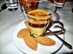 Although all of us were already admittedly stuffed from the appetizers and entrees, the desserts sounded to intriguing to pass up. Most options are classic dessert items but often with a modern twist and/or deconstructed presentation. For example the carrot cake cheesecake, which had square chunks of carrot cake that sat atop various sauces or textures, each representing a different flavor of the carrot cake as a whole. The dessert was as gastronomically pleasing as it was aesthetically pleasing – a hard feat considering the work of art each dish is. I was really craving coffee after our meal so my friend pointed out that Fleet Street had an affogato on the menu. I had never heard of such a thing before, but an affogato is a shot of espresso poured over a dollop of vanilla ice cream.  Lemon ginger snap cookies are served alongside the beverage for dipping. It was the perfect after dinner drink.