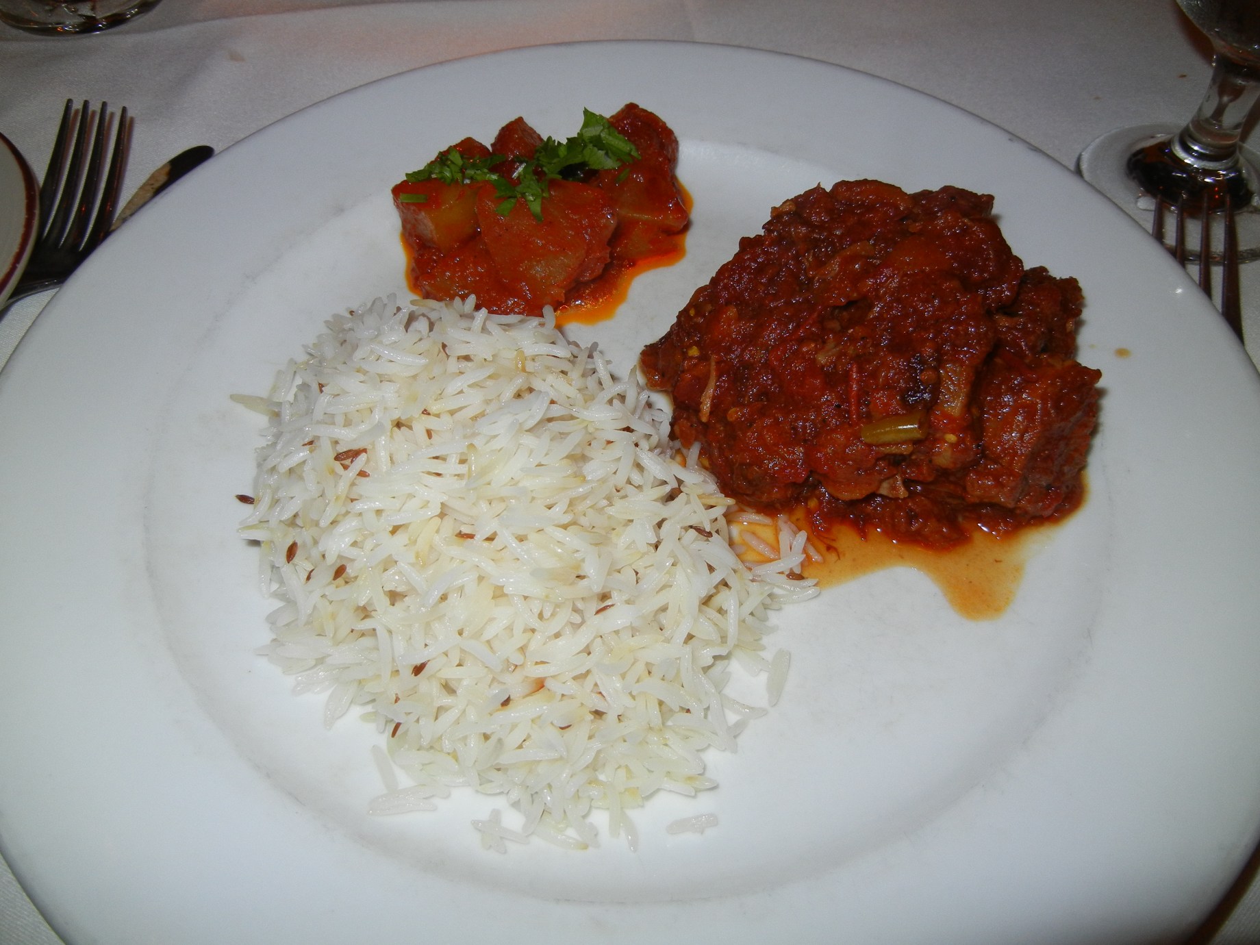 That evening we also sampled the seekh (beef tenderloin) and chicken kabob, which are some of the less intricate entrees, but still delicious. The chicken kabob sounds like the most boring thing on the menu, but it was unbelievably good. The kabob has large chunks of white meat fresh chicken lightly seasoned and then grilled. The chef cooks the chicken perfectly, until juicy and tender. The seekh kabob is pieces of beef tenderloin also lightly seasoned and grilled to a charry perfection – not as good as the chicken, but still very good.