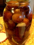 Scratch also offers Italian caponata, which is similar to a relish but not quite as sweet. Steve starts by roughly chopping eggplant, tomatoes, onions, garlic and celery. The vegetables are then lightly sautéed with yellow raisins until all components are soft and the flavors melded together. The onions and tomatoes add a natural sweetness to the earthy mixture of vegetables, which get a touch of brininess from fresh capers. It is very difficult to not consume the entire bottle in one sitting – it is truly addicting, The caponata is also perfect for entertaining – guest will love putting the caponata on crusty Italian bread or it can be paired with pasta for an easy vegetarian dish.