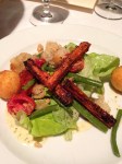 Both cocktails were prepared in individual size Boston shakers, which were poured tableside and left on the table for you to refill your glass once it got low. A relatively simple concept, yet unheard of in modern day fine dining – or any type of dining for that matter. Better than the generous portion of booze was the craftiness of the drinks themselves. The speakeasy was a rye whiskey based drink, having yellow chartreuse, sweet vermouth and orange infused bitters. This cocktail embodied the bold whiskey yet provided floral background notes making it very drinkable and delicious. The L75 was a play on a traditional French 75 cocktail, featuring Hendricks gin, St. Germaine, fresh lemon juice and finished with sparkling wine. The drink arrives with a sugar cube on the bottom, which continued to fizzle like champagne as the evening went on – another excellent cocktail.
