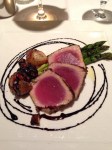 The tuna was served thickly sliced over some nicely charred asparagus and roasted pearl onions, then drizzled with balsamic. I was pleasantly shocked at how well the rosemary and tuna went together, it was bold yet not overpowering to the delicate and perfectly cooked tuna. The onions and asparagus were nice accompaniments; however I would have liked a sauce that was a bit more intricate than balsamic. But it didn’t matter, the dish was very delicious.
