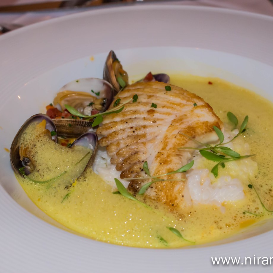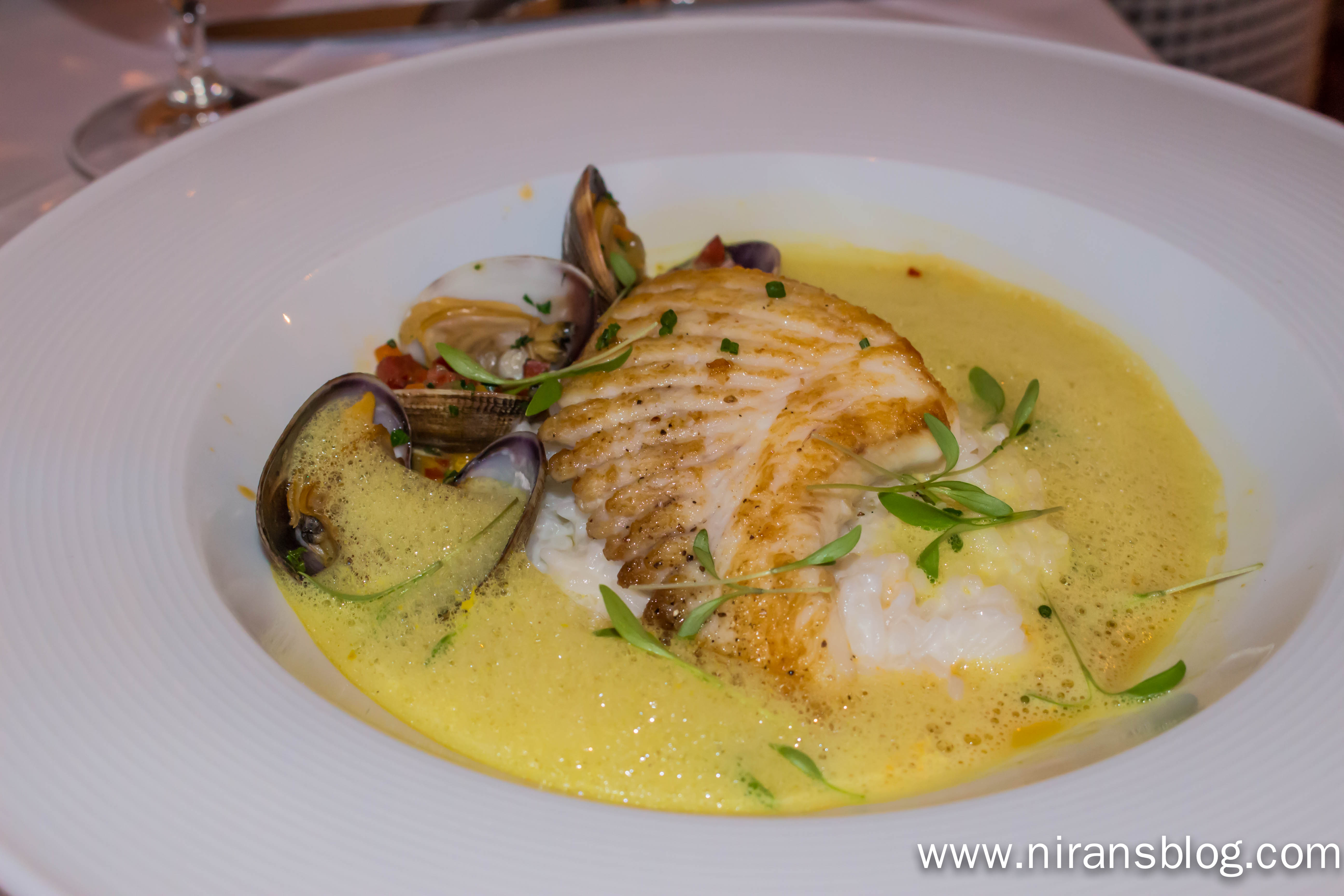 skate wing w. clams and curry broth