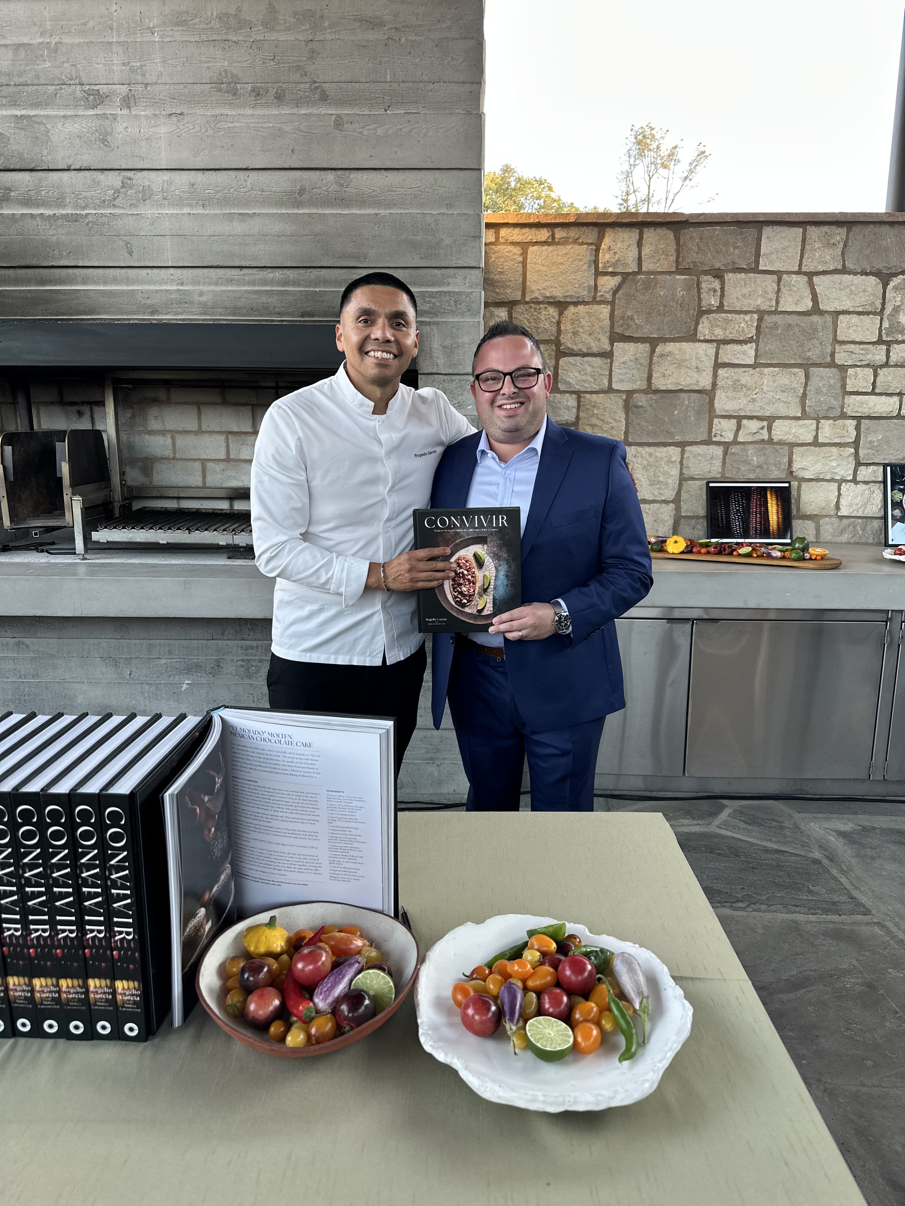 On this particular evening in late September 2024, the Four Seasons hosted a celebratory gathering on the patio in honor of Chef Rogelio Garcia’s newly released cookbook, Convivir. Before dinner, we had the pleasure of meeting Chef Garcia as he signed copies and posed for photos with guests. I feel compelled to mention how genuinely humble and kind he is. When we congratulated him on his Michelin star and the many accolades he’s received, he graciously deflected the praise, instead asking where we were visiting from and expressing his excitement to cook for us that night. It was a warm and personal moment that set the tone for the exceptional meal to come.