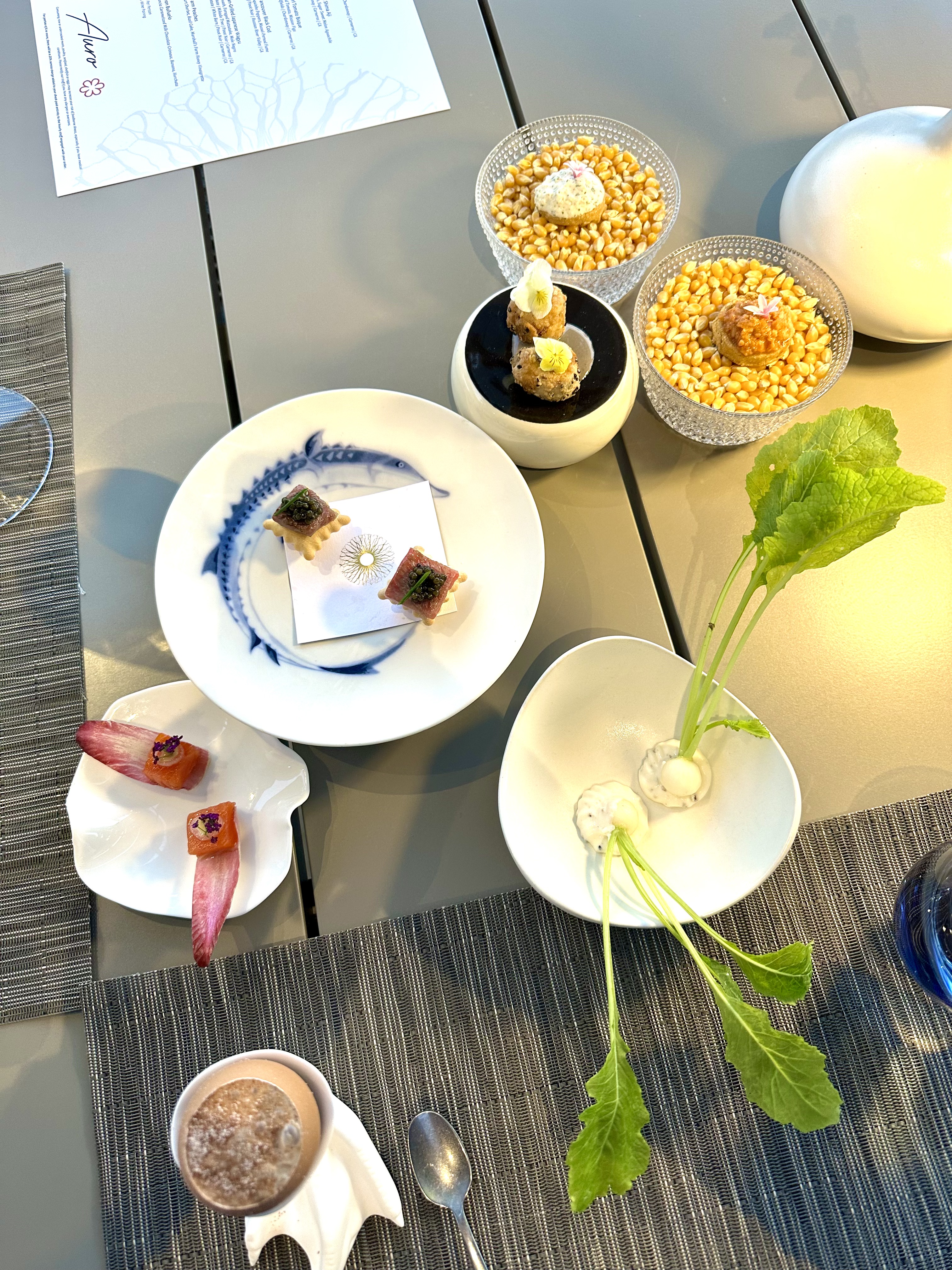 Before the official courses began, the kitchen sent out a series of intricate snacks—each bite a preview of the technique and creativity to come. We were advised to start from the top: