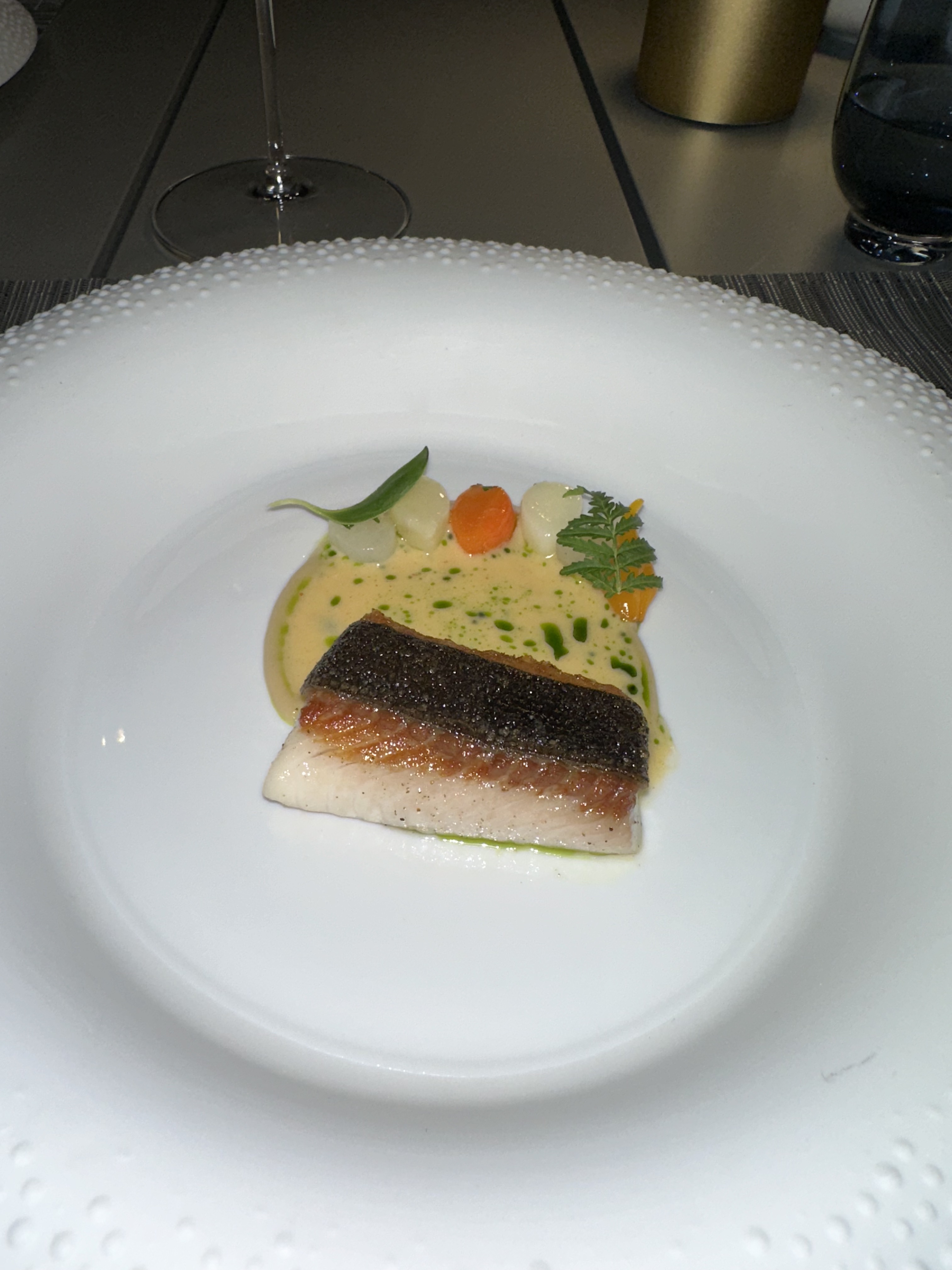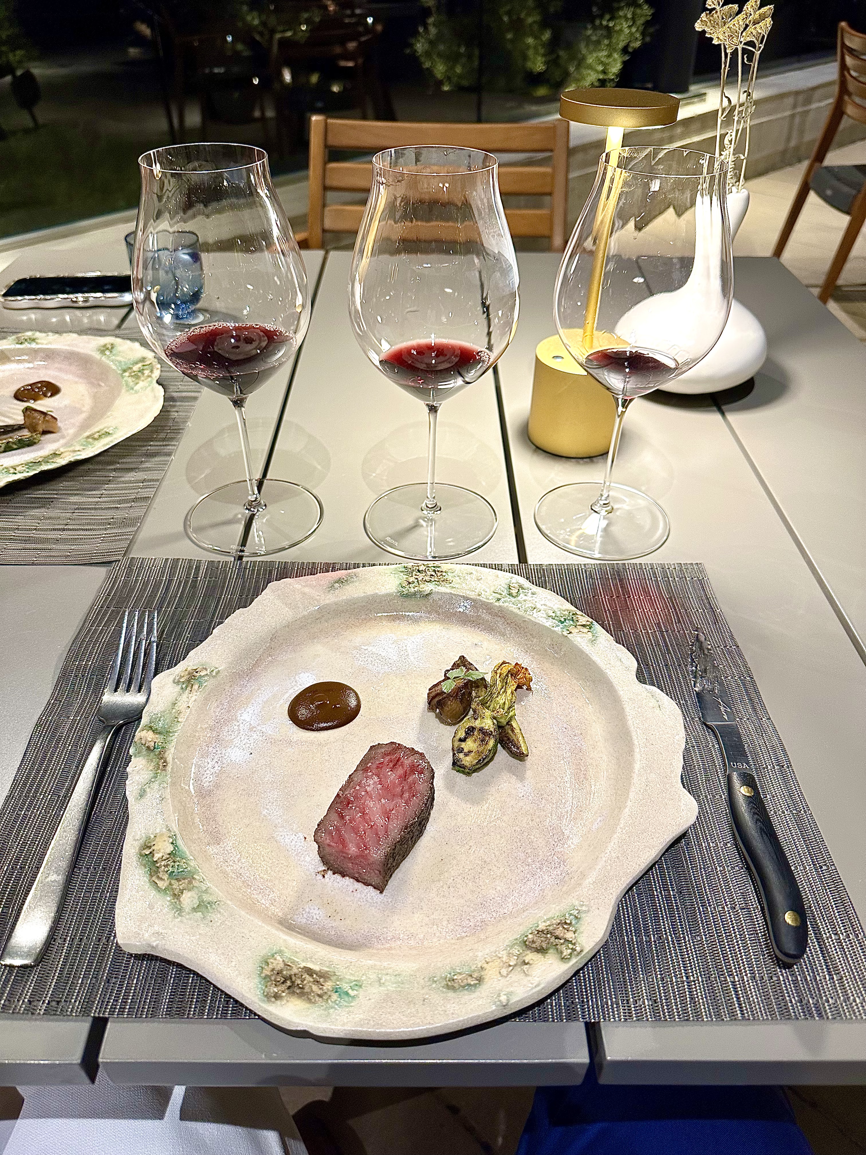 A quick highlight on the wine pairing: I was introduced to Donum Estate for the first time during this meal. Located in Sonoma County, its cooler climate compared to Napa makes it ideal for cultivating Pinot Noir and Chardonnay. Their lineup included several expressions of these varietals, including a Blanc de Blancs sparkling wine. Mark de Vere, Donum’s Global Estate Ambassador, was present that evening, sharing insights about the wines and the striking bottle art created by renowned Chinese artist Ai Weiwei. The pairings were well balanced, and the generous pours inspired me to order some bottles for the upcoming holidays.